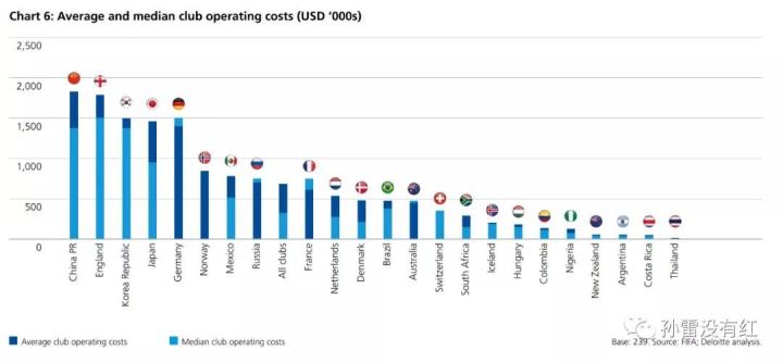 比如联赛俱乐部年均运营支出,中国排名世界第一位。