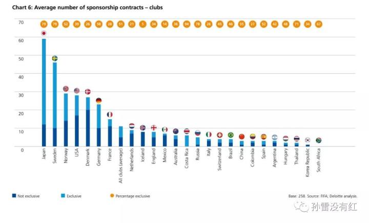 但在赞助商的数量上,中国的俱乐部只有个位数,排在世界中下游。这项数据,并不能直接说明俱乐部获得赞助的总额,但能说明该国家女足的市场化水平。排名靠前的都是发达国家,而2010年才拥有女足顶级联赛的英格兰,也来到了排名中游。