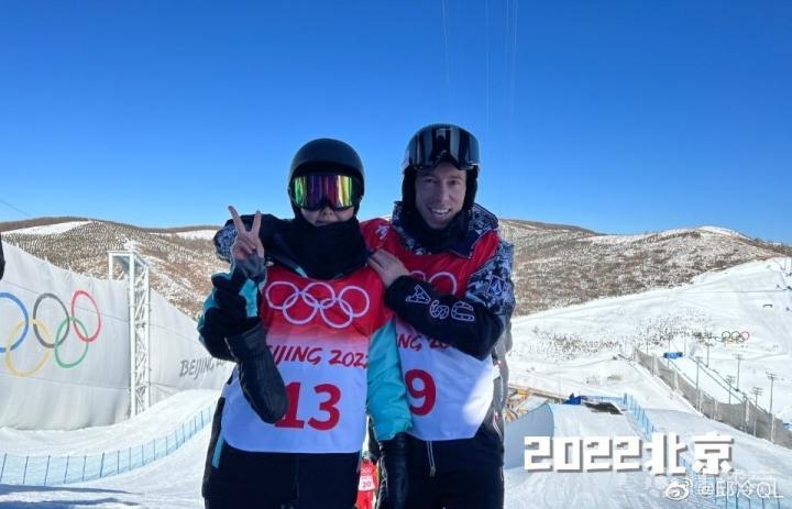 北京时间2月12日,中国单板滑雪U型池场地国家队队员邱冷在个人社交媒体上晒出了与传奇运动员肖恩-怀特的合影,向他致敬。