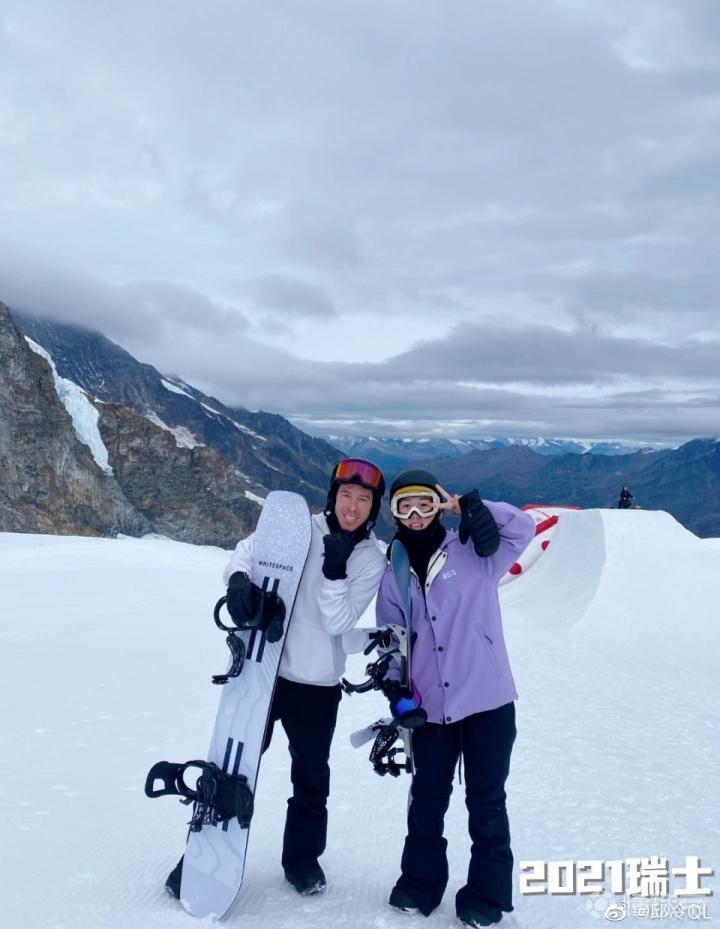邱冷在个人社交媒体上晒出了与传奇运动员肖恩-怀特的合影并写道:“永远的传奇,respect。”