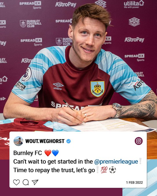 伯恩利冬窗引援:韦格霍斯特(沃尔夫斯堡,1400万)