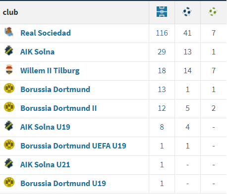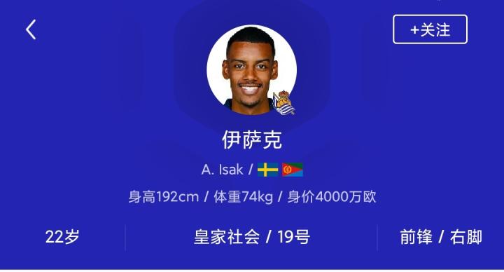 虽然伊萨克的多特蒙德生涯非常短暂,他依然获得两个重大奖项:德国杯冠军,德国u19甲级联赛冠军。为了充足的一线队出场机会,伊萨克再次转会,他再次拒绝了豪门的橄榄枝,选择了皇家社会。青年球星加盟不久便离开球队往往会让球迷怨恨,而伊萨克不一样,转会离开多特的时候为球队留下1500万欧元,光是转会差价就赚足740万。离开之时,得到球迷们的支持和祝福。2019/20赛季,伊萨克为球队场均出战40分,总计出场37次,贡献9个进球,进球平均耗时仅166分钟。20/21赛季,伊萨克成为主力,首发30次,联赛打进17球贡献2次助攻。本赛季,皇家社会锋线竞争激烈,伊萨克也有4球入账。我们欣赏一下伊萨克的集锦(视频):