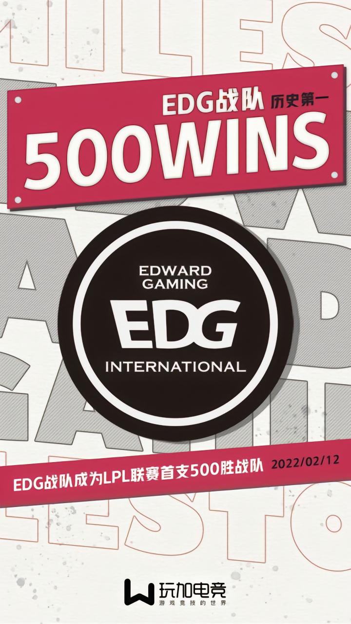 里程碑:EDG成为LPL联赛历史第一支获得500胜的战队