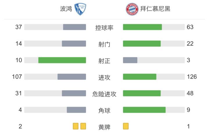 第9分钟,穆勒分左路,科曼头球传向禁区,莱万调整后推射破门,波鸿0-1拜仁慕尼黑!