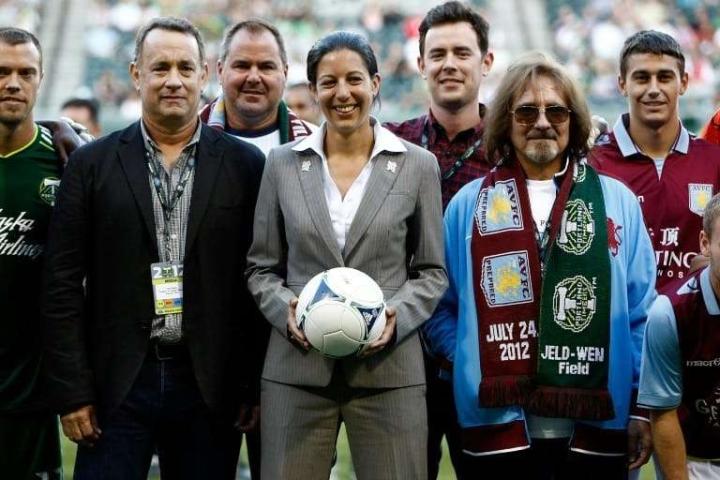 阿斯顿维拉球迷----阿甘 托马斯·杰弗里·汉克斯(Thomas Jeffrey Hanks),汤姆·汉克斯(Tom Hanks)则是我们更加熟悉的名字。 美国男演员及电视制片人,以演技精湛而著称。汤姆·汉克斯因为《费城故事》(1993)、《阿甘正传》(1994)曾接连2届赢得了奥斯卡最佳男主角奖,他是历史上继斯潘塞·特雷西之后的第2位连续两届获得奥斯卡金像奖最佳男主角奖的演员。他的电影《阿甘正传》感动了全球很多人。 他以46岁年纪成为最年轻获得美国电影学会终身成就奖的演员。2016年获颁美国最高的平民荣誉—总统自由勋章。 他最喜欢的球队是阿斯顿维拉,他也经常在Aston Villa TV上露面,并在俱乐部的友谊赛中客串工作人员。