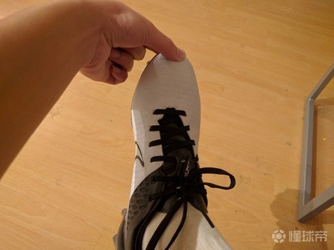 在真正上脚之前,在下先将鞋垫抽出来一窥端倪。首先,Nike的鞋垫之渣和Mizuno相比也是有过之而无不及,非常薄,几乎没有什么减震效果,透气孔设计的透气性能也没有好到哪里去。这绝对是Nike球鞋一个普遍的老毛病了,也是傲娇得懒得改。再者,这鞋垫的形状一看就会觉得这双鞋的鞋型估计也是来者不善,形状蜿蜒扭曲,前掌也非常窄。而且在测量了鞋垫的长度之后,我要在此提醒各位想要入手的朋友,记得买大半码!此鞋偏小!