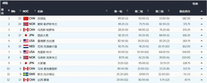在此前的资格赛中,苏翊鸣维持着稳定的发挥,以155.25的总分排名第五顺利进入决赛,将在第八顺位出场。大跳台决赛共有三轮,取每位选手最好的两轮成绩相加作为最后的总分。