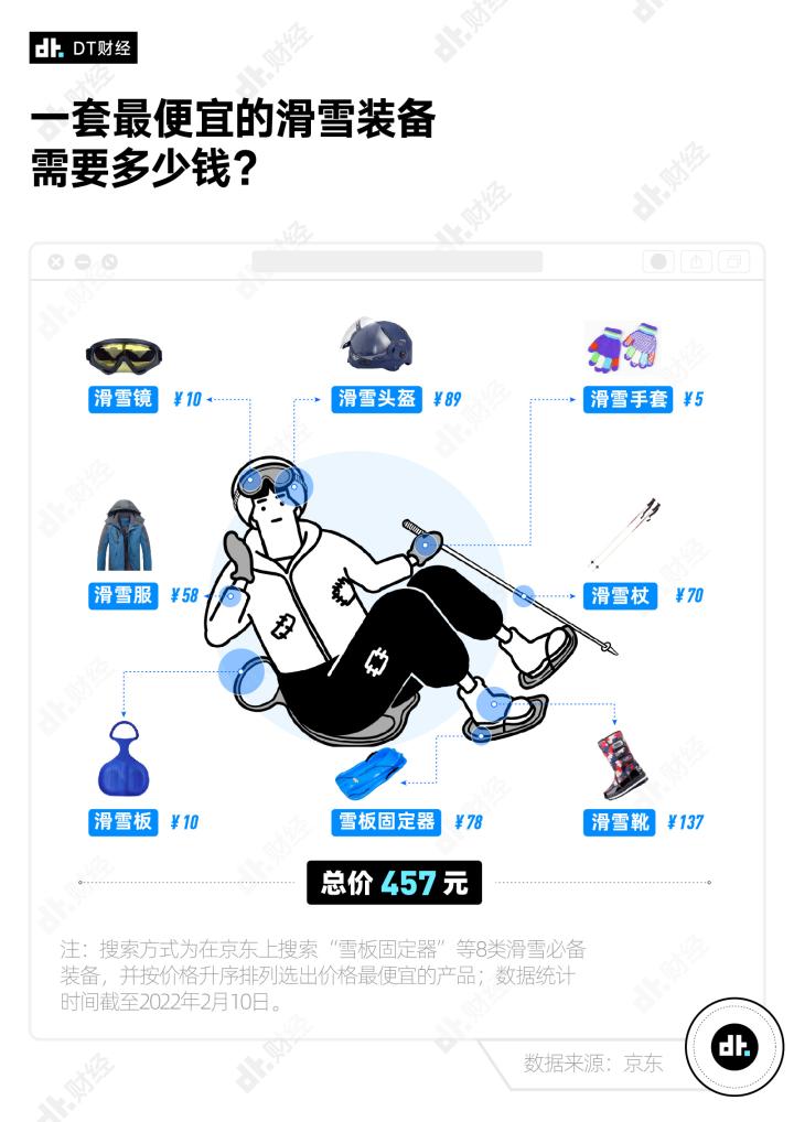 结果显示,457元,最低仅需457元,你就能够成功拥有一套属于自己滑雪装备——尽管这套装备可能会让你在雪场里鸡立鹤群。
