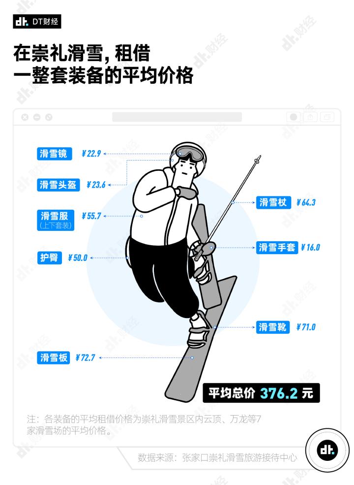 总体来说,租赁一整套装备的平均价格在376.2元/天。但想在云顶、万龙这些大型的热门滑雪场,装备租赁的花费还要高一些。