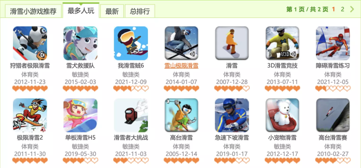 如今在4399上搜索“滑雪”,402款游戏涵盖了几乎所有冰雪项目。从雪地速滑到雪地障碍赛、从宠物滑雪到天线宝宝滑雪,滑雪小游戏都能全方位地提供滑雪体验——这也许比花几千块钱滑雪、住酒店,来得划算得多。