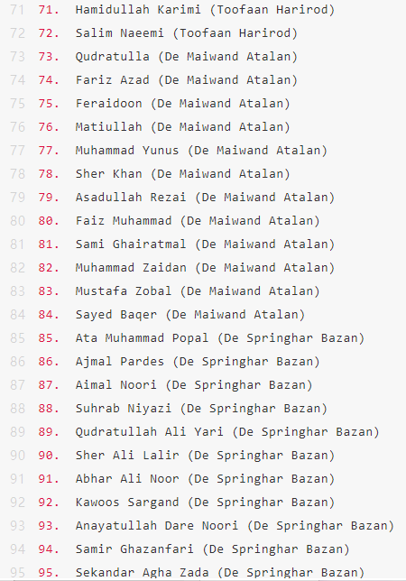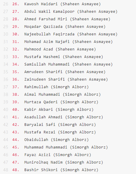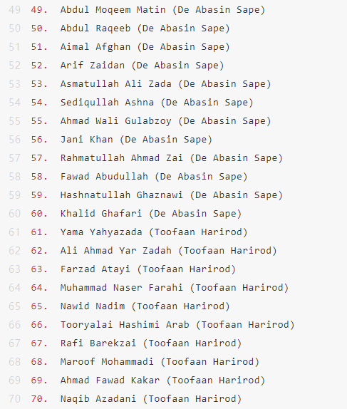 最后,再附上Topps阿富汗超级联赛球星卡的Checklist,尽管没什么用。