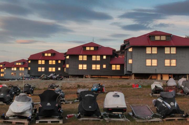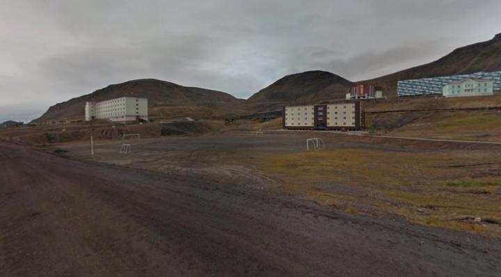 这大概是世界上最北的足球比赛了。朗伊尔城是挪威属地斯瓦尔巴群岛的最大岛──斯匹次卑尔根岛的首府,距离北极点1300千米,是世界上离北极最近的城市,人口不到2000人。每年11月至次年1月,这座城市都是处于黑暗之中。