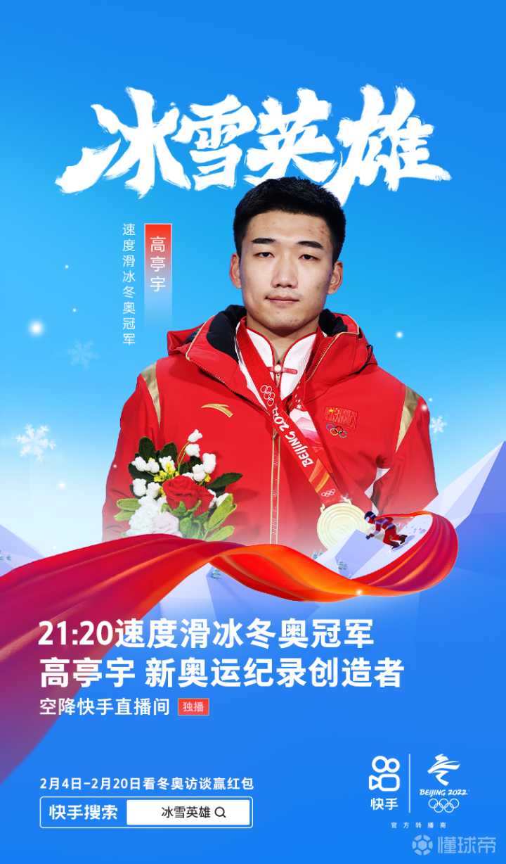 #上快手追冬奥#送冰墩墩啦!今天21:20北京冬...快手足球 @懂球帝2022-02-16 21:45#上快手追冬奥#送冰墩墩啦!今天21:20北京冬奥会速度滑冰男子500米金牌得主@高亭宇_ 将做客《冰雪英雄》直播间,一起期待这位新奥运会纪录创造者在直播间金句不断!上快手搜索“冰雪英雄”,倾听冬奥健儿故事,直播间还有冰墩墩,百万快币红包、手机、ipad、京东卡多重好礼等你来拿!展开更多