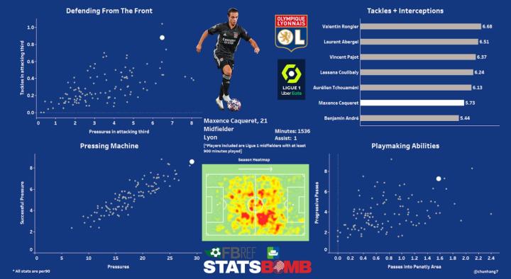 有数据(FBref)显示,卡克雷是法甲乃至全欧洲五大联赛最善于逼抢的球员之一,他的逼抢可以说非常犀利,而他在比赛中的冲刺次数也非常多。