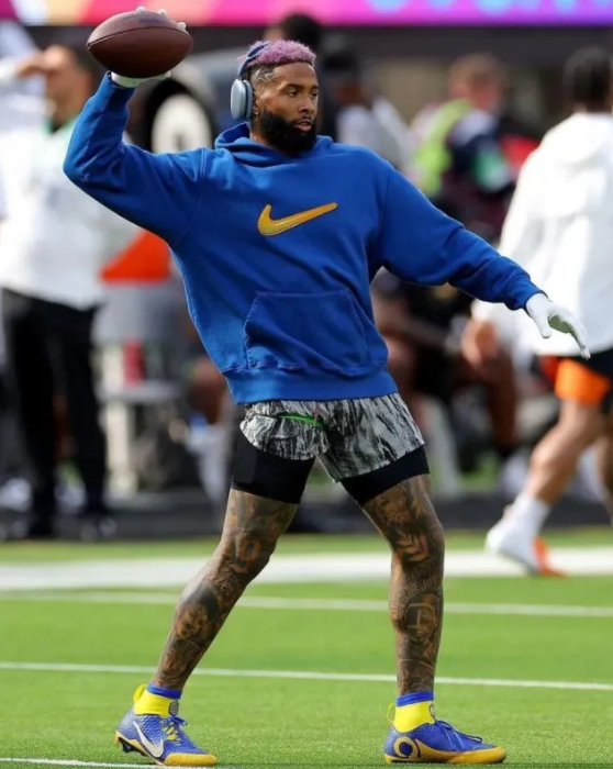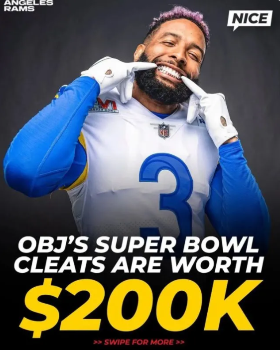 在今年的美国NFL职业橄榄球大联盟年度冠军赛中,洛杉矶公羊队以全场23-20的比分夺得队史第二座超级碗冠军。公羊队的外接手Odell Beckham Jr上脚了一双镶满钻石的球鞋,价格高达 $200000 美元。据球鞋媒体nicekicks报道这是超级碗有史以来球员脚上最贵的球鞋!