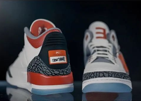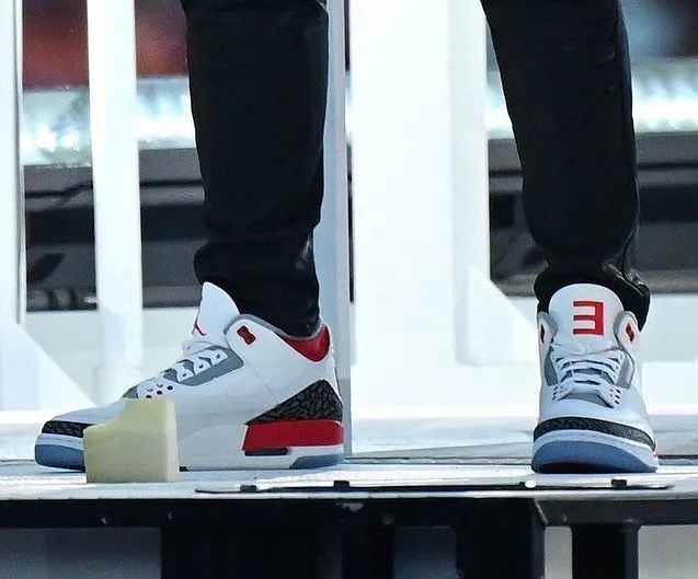运动员的战靴惹人注目,中场秀的嘉宾也不甘落后,其中阿姆脚上的一双个人专属Air Jordan 3 “Fire Red” PE就成为全世界球鞋爱好者关注的焦点。