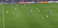第二点,则是通过始终偏向左半扇的双前锋体系,让身后的中场球员完成从左至右的横向转移,为右边路的阿达玛-特劳雷制造一对一的发挥空间: