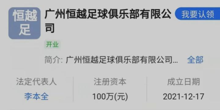 从最近了解的情况来看,去年12月17日,也就是广州队在最艰难的情况下参加争冠组比赛的时候,恒大集团以足校为基础,在广州天河区成立了一家新的足球俱乐部:广州恒越足球俱乐部有限公司,注册地位于广州市天河区黄埔大道西78号,而这个地址正是恒大中心所在地。