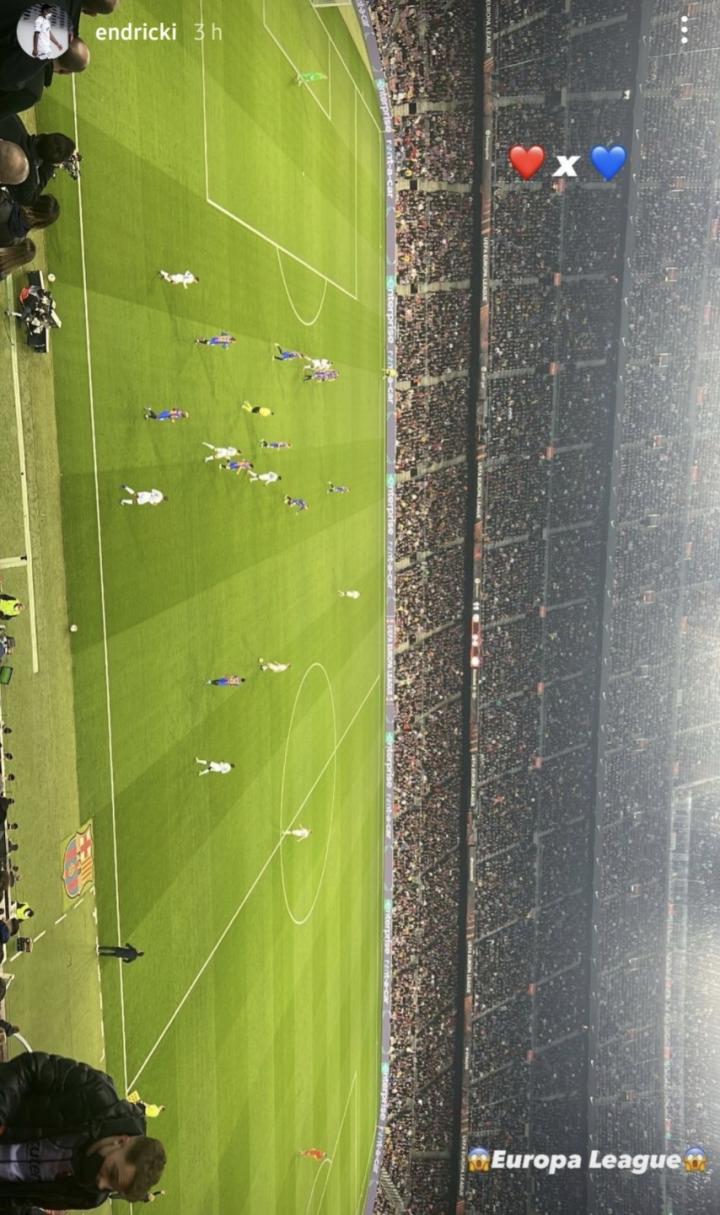 在巴萨昨晚对阵那不勒斯的欧联杯比赛中,巴西天才球员恩德里克来到了诺坎普球场观战。