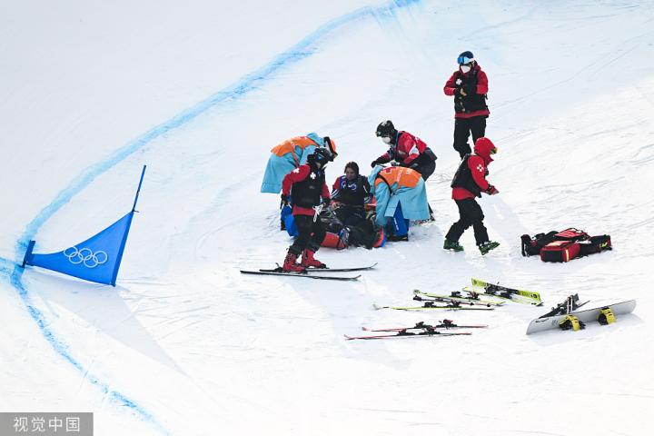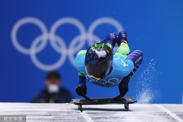 雪车项目中,选手的最快时速可达到160km/h,选手们需要经过15-20个弯道,在高速行进的过程中,选手们要尽力避免与赛道两壁碰撞以保持速度,如有意外,雪车和选手都可能会遭遇重创。在北京冬奥会男子双人雪车第三轮比赛中,英国选手就在终点前不慎翻车,所幸没有大碍。