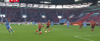 第63分钟,格里福任意球直接攻门被门将扑出,随后霍夫勒跟上的补射高出横梁。