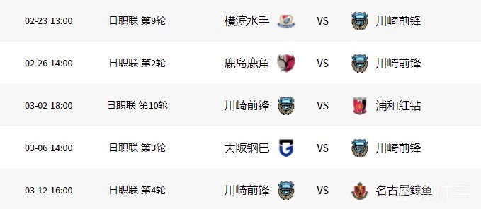 ↑川崎之后的赛程,不到一个月的时间里他们将面对上赛季第二、第四、第五和第六名的球队。