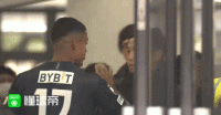 ↑本场赛前,卢基安和远藤保仁相互问候。