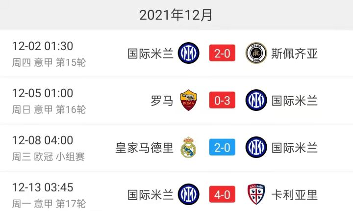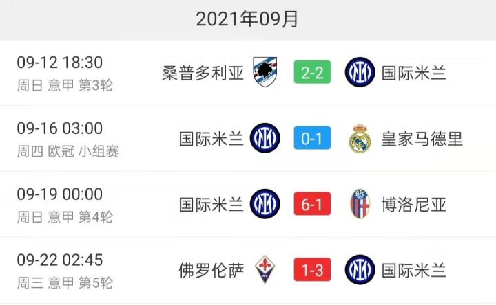 欧冠输球后,国米之后一轮联赛都会全取三分,甚至是大胜对手。