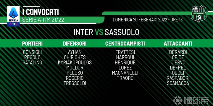 此战萨索洛缺少了他们的主力中卫詹马科-费拉里,此外德国后卫托利安以及塞尔维亚中场久里契奇同样缺阵。