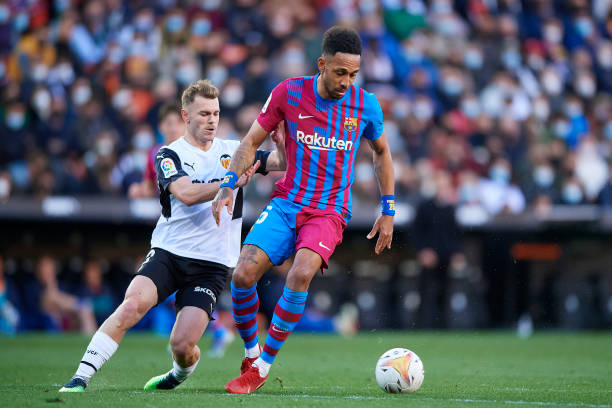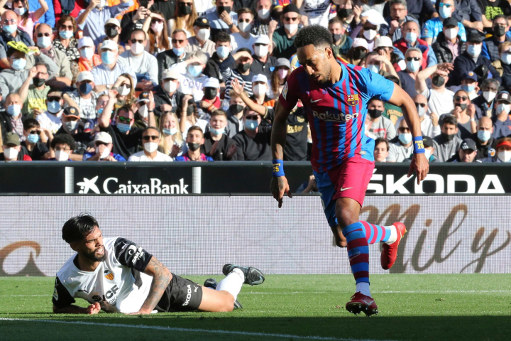 巴塞罗那前锋皮埃尔-埃梅里克-奥巴梅扬在他职业生涯的第一次西甲首发中表现出色,他在第25比赛日对瓦伦西亚的4-1客场胜利中上演了帽子戏法。