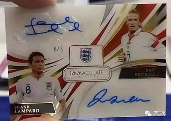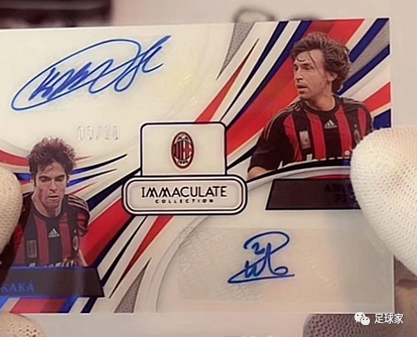 mmaculate Dual Autographs(完美双签)是每个imm系列中都会推出的多签签字中的一种,本次一共有14组球员双人组合签字,在这之中有很多非常炸裂的组合,譬如图中的老马&巴蒂双签(25编或更低)。除此之外,“好人”双签组合还包含皮尔洛&卡卡(AC米兰,15编或更低)、鲁尼&凯恩(英格兰,15编或更低)、贝克汉姆&劳尔(皇马,15编或更低)、兰帕德&贝克汉姆(英格兰,15编或更低)、C罗&菲戈(葡萄牙,15编或更低)、兰帕德&芒特(切尔西,49编或更低)、贝克汉姆&C罗(曼联,15编或更低)。