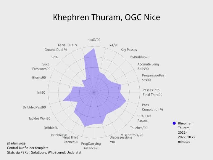 法国足球资讯据西班牙媒体近日的报道,皇马和巴萨都正在关注20岁的尼斯中场凯夫伦-图拉姆(Khephren Thuram)。这位年轻的法国U21国脚是名宿利利安-图拉姆的小儿子。