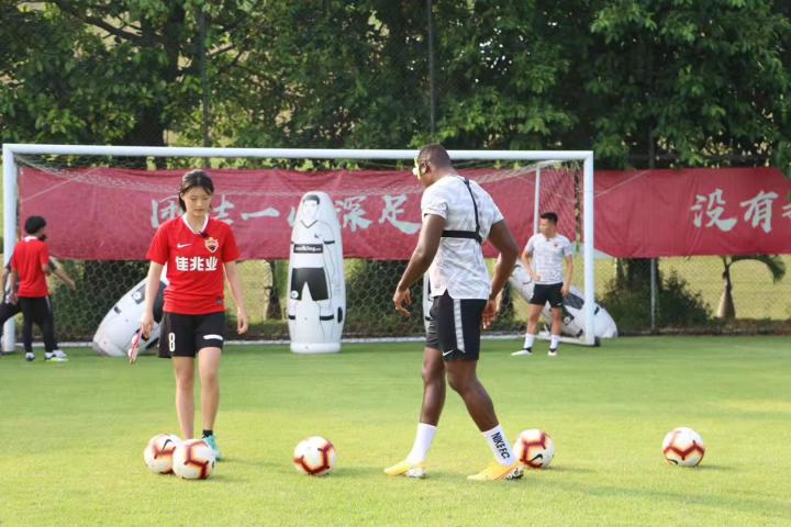 来到大学之后,一开始学校并没有建立女足队伍,晓萱就一直跟着男足院队一起训练。