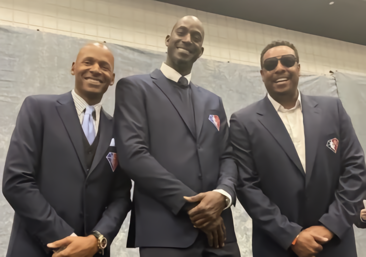 昨天的大合照上,这三巨头重新见面,终于相逢一笑泯恩仇,爽快地拍了合照。事后,加内特主动在社媒账号上发了这张照片,而雷-阿伦则很快转发了,证明他们已经化解了矛盾,觉得都退役了,没必要再纠结之前的事情。