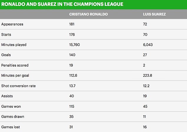 本场比赛的另一看点当属前利物浦球员苏亚雷斯和C罗之间的较量。两位前锋的年龄加起来足有72岁,两人共在欧冠比赛中出场253次,打入167个进球。C罗跟随皇马一共五次夺得欧冠冠军,而苏亚雷斯仅仅在2015年随队拿到过一次欧冠。