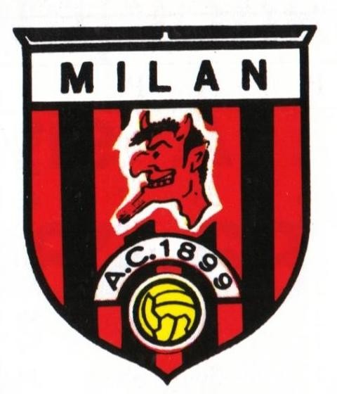 第一版队徽的样子虽然有点方方的,但已经可以明显看出我们所熟悉的那个AC米兰logo的雏形,右侧是米兰城的十字旗,左侧则是一眼就能看出是“红黑军团”的竖向条纹,这下可算是直接把球衣印在了队徽里,也难怪他们能传承百年呢。