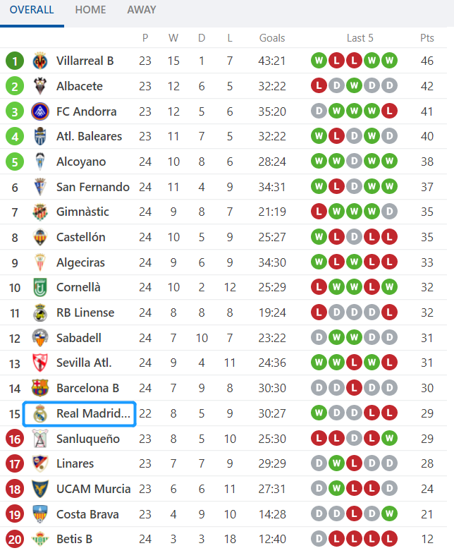 此役过后,皇马卡斯蒂亚吞下两连败,比降级区“守门队”少赛一场同积29分。