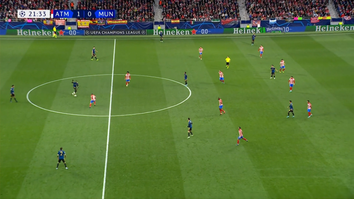 图:马竞前场高位压迫,注意孔多比亚的站位