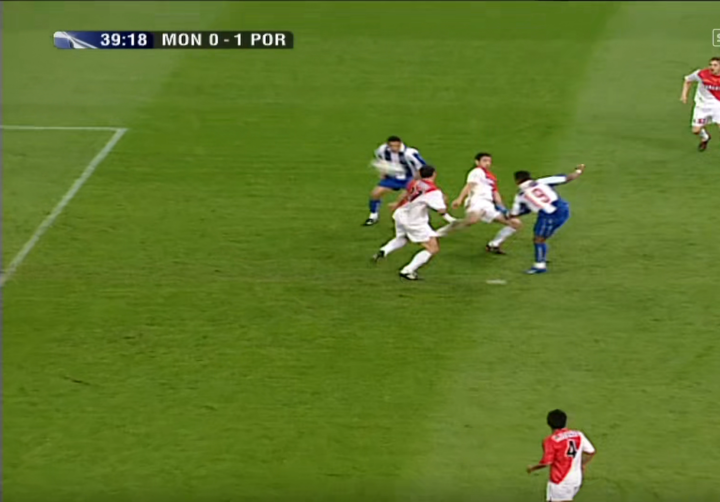 2003-2004赛季欧冠决赛,穆里尼奥率波尔图3:0击败摩纳哥,从此一战成名天下知,成为世界名帅。图为卡洛斯·阿尔贝托打入首球瞬间。
