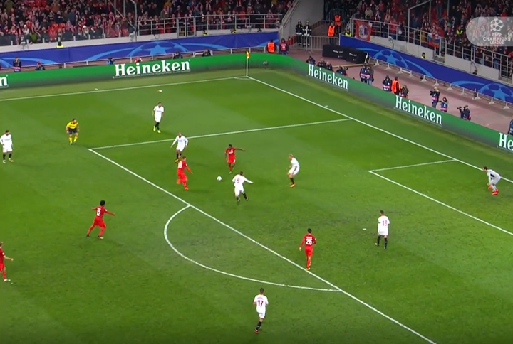 对阵塞维利亚的2次交手给观众们留下了深刻的印象。2017-2018赛季欧冠小组赛是莫斯科斯巴达与塞维利亚唯一一次在欧战相遇,首场比赛塞维利亚客场1:5遭遇铭心刻骨的惨败,回到主场2:1取胜一雪前耻。那个小组还有利物浦,红军主场7:0狂胜莫斯科斯巴达,两回合对阵塞维利亚都是险获平局。最终塞维利亚第二出线并淘汰曼彻斯特联闯进八强。