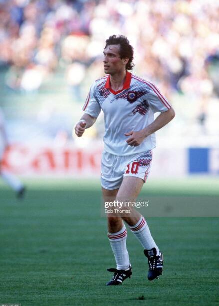 在普罗塔索夫同一时期,还有一位大名鼎鼎的乌克兰球星,那就是米哈伊利琴科,他当时效力于基辅迪纳摩,也是苏联队的中场核心,但是因为伤病错过了1990年世界杯,前苏联队也因此实力受到影响,连输两场,小组赛就被淘汰出局。世界杯后,他加盟了意甲桑普多利亚。并且帮助桑普获得了那个赛季的意甲冠军,苏联解体后,米哈伊利琴科转会到了格拉斯哥流浪者,帮助球队取得五连冠。他选择继续代表俄罗斯队出战,不过只参加了1992年的欧锦赛一届大赛。