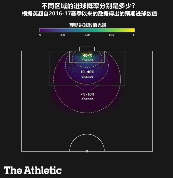 我们知道点球的进球概率大约是75%。那禁区外的远射呢?根据具体情况,大约在5%至10%这个范围,远低于在禁区内打门的概率。