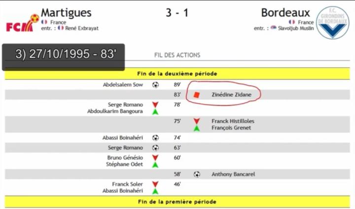 1995年10月27日,马尔提格3比1战胜波尔多。第83分钟,齐达内铲倒门迪,被直接罚下。