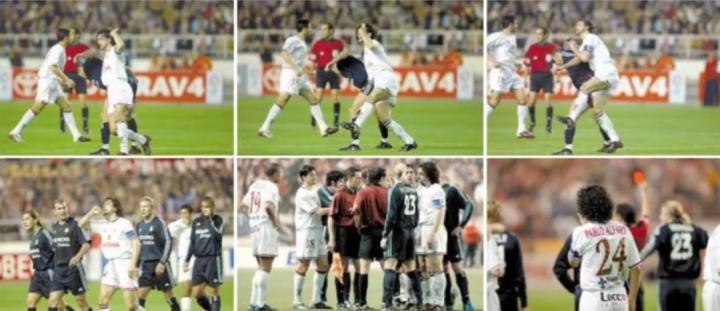 2004年2月11日,塞维利亚1比0战胜皇马。第45分钟,阿尔法罗肘击齐达内,齐达内以一个类似扇耳光的挑衅动作予以回击。助理裁判目击这一切并通知主裁,齐达内被直接罚下。