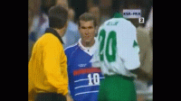 1998年6月18日,法国4比0战胜沙特。2比0领先时,齐达内被沙特队长阿明铲倒。齐达内起身后故意踩踏阿明,被直接罚下并追加停赛两场。