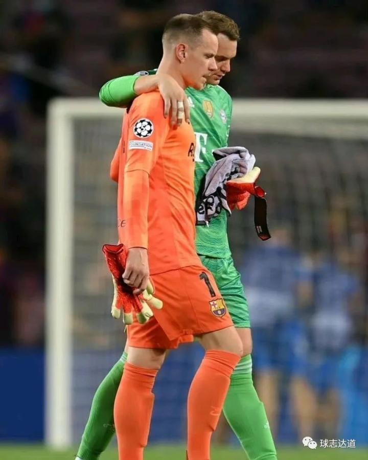 前面提到过,门将最适合的身高应该是187~193,如若天时难备才具不足,不须自抑,打磨自身技术和心态也是必要的,虽然最后受限于身体难免输天半子,但尽人事看天命也未尝不是佳话。巴萨门将特尔施特根就是这种类型。德国门神的成长环境正值德国战术风格向传控转变的十数年间,再加上老大哥诺伊尔珠玉在前,特尔施特根自门兴时期开始便苦练个人技术,笔者看来丝毫不逊色于诺伊尔。加盟巴萨后,首年充当杯赛门将的特尔施特根丝毫不怯场,接连面对巴黎,拜仁、尤文重重刀枪剑戟时,第一年踢欧冠的小狮子亦毫无惧色,最终为巴萨成就五冠伟业立下汗马功劳。16~19的特尔施特根是德国队毫无疑问的二号人选,甚至在诺伊尔伤缺的一年半里收获了不少成为世界杯一门的呼声,但勒夫还是选择了诺伊尔。
