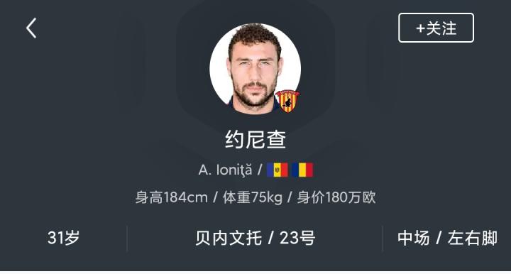 贝内文托 约尼查(Artur Ionita) 左右脚 中场前腰后腰