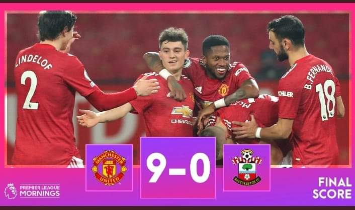 在英超赛场,最大单场比分是9-0,曼联和南安普顿均经历两次,只不过一个是施暴方,一个是受虐者。1995年红魔9-0大胜伊普斯维奇,2021年2月,曼联9-0血洗南安普顿。而在2019年10月,圣徒还曾在主场0-9惨败莱斯特城。