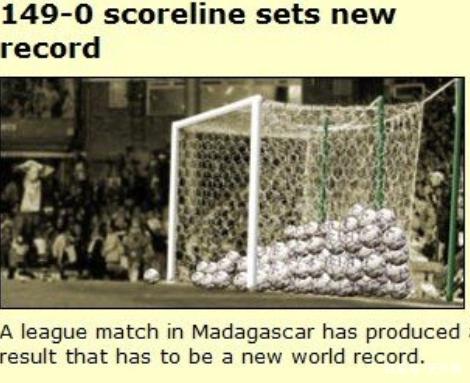 奇葩故事:创吉尼斯纪录的149-0!取胜一方却一球没进