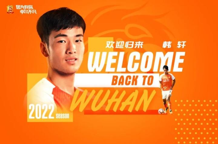 武汉队官方:后防球员韩轩正式回归加盟球队